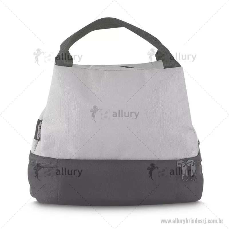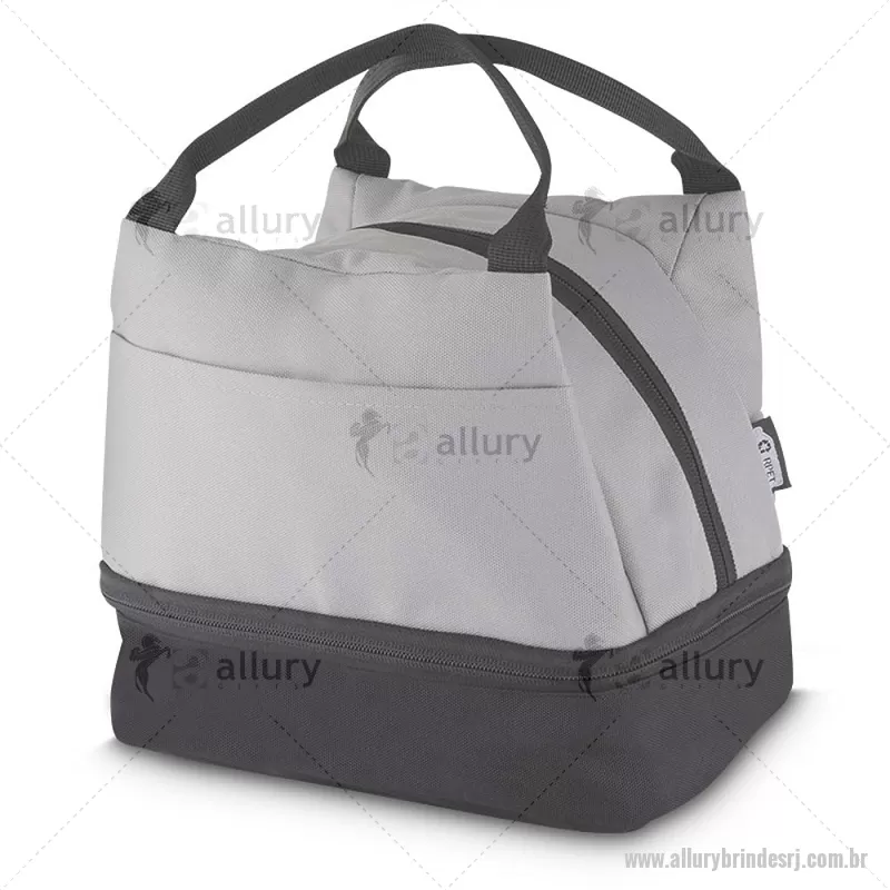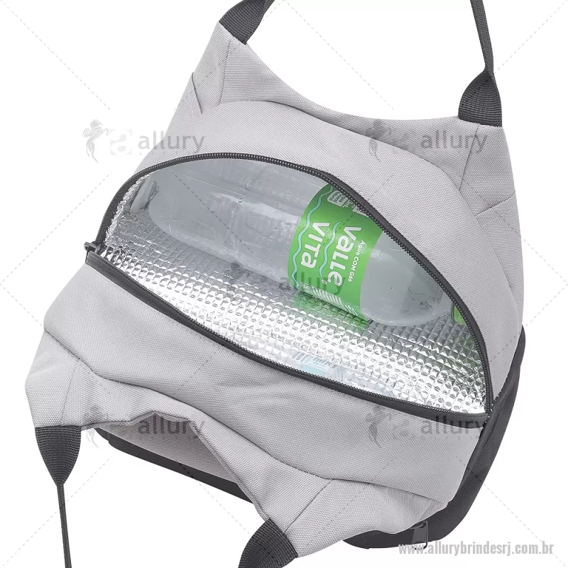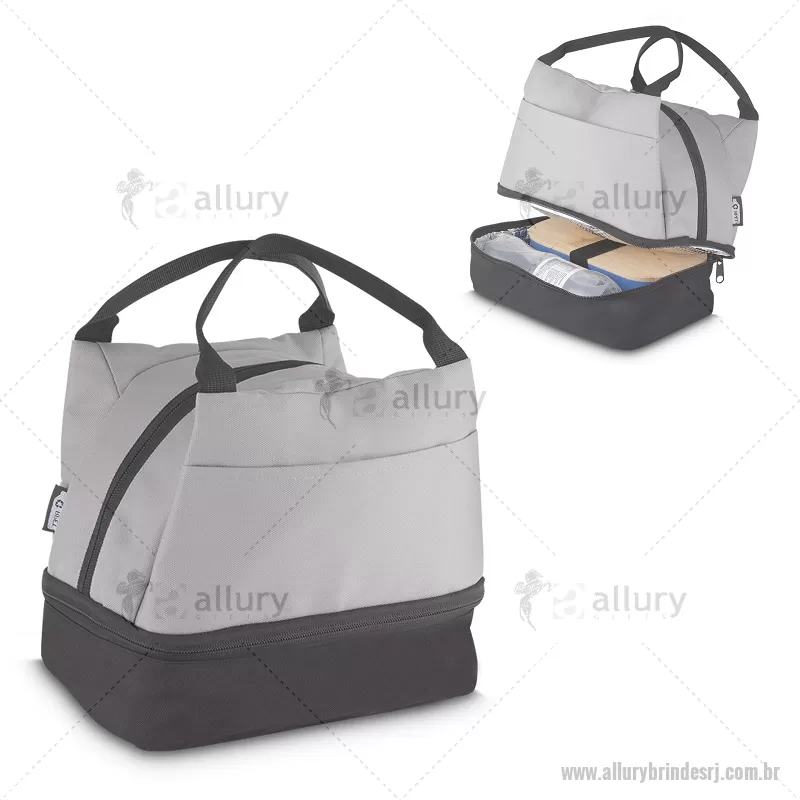 Bolsa térmica 7litros em tecido PET Reciclado com 2 compartimentos térmicos costurados, bolso frontal e alça de mão. Dimensão Produto: 21x24x15cm (AxLxP) Peso do Produto: 0,130kg Volume: 7L - - ALLRJBT094